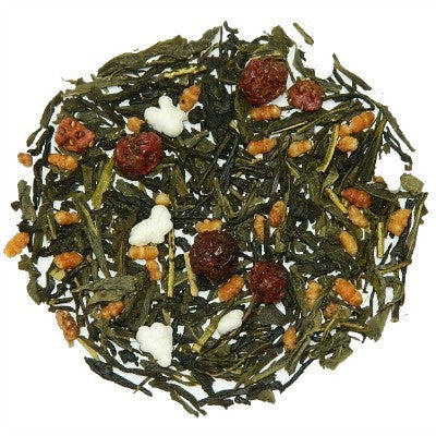Indulge in this delightful blend of Japanese green teas combined with strawberries and red currants.
