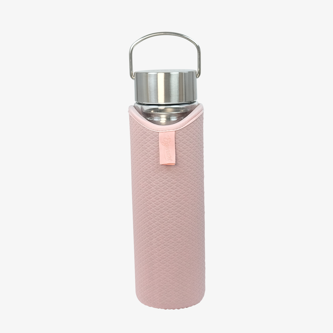 • Double-wall glass bottle with screw on cap