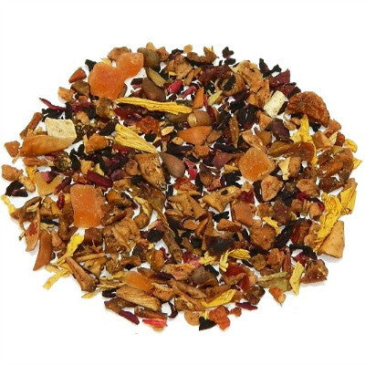 Indulge in the fruity goodness of this tea blend that boasts a bold passion fruit aroma, perfectly balanced with papaya and melon.