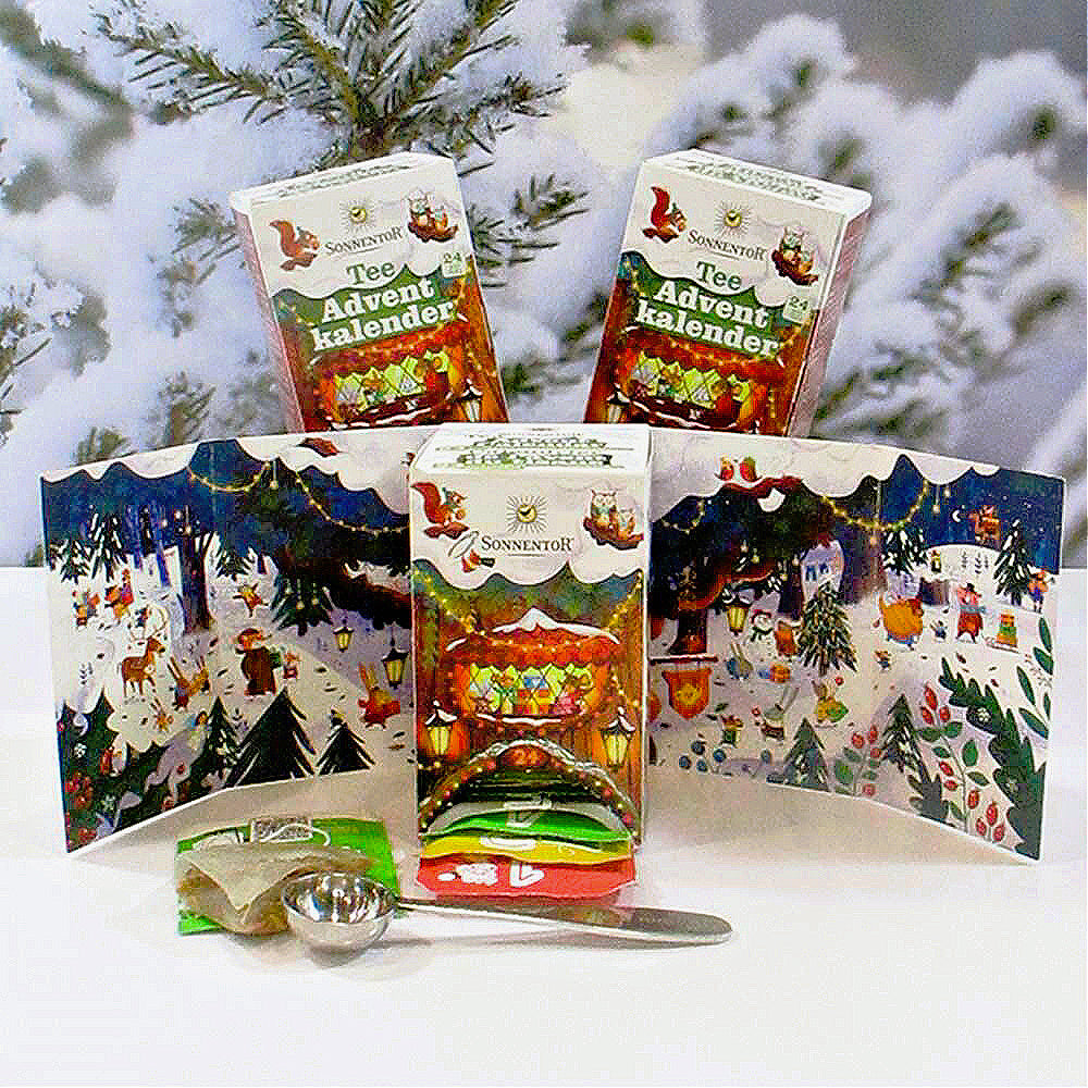 Oh, it's a blissful time in the lead-up to Christmas! This Advent calendar has a new tea surprise ready for you daily and numerous digital experiences that shorten the time until Christmas. Collect tea ingredients in your virtual cup, or transform yourself into Santa Claus. Sonnentor has made the Advent calendar on the tea package bigger, which makes it a festive eye-catcher with its loving Christmas design.