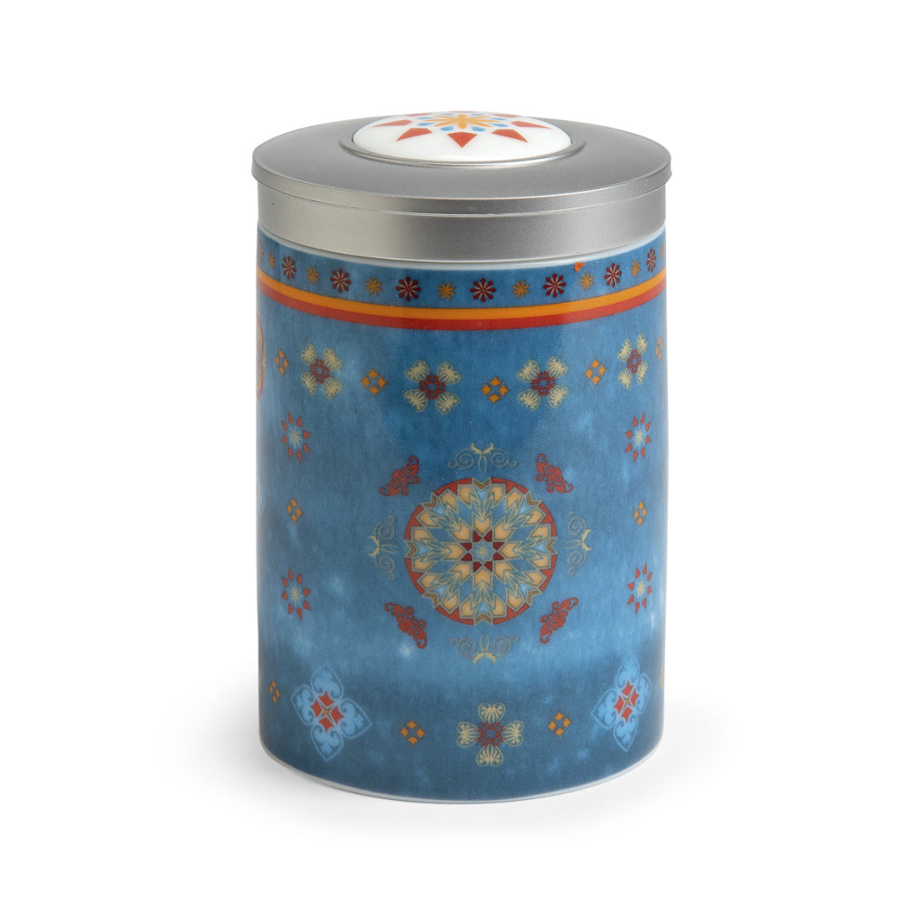 The Agadir Porcelain Tea Container is an exquisite storage solution for tea connoisseurs. Crafted from durable porcelain and adorned with a beautiful navy blue design, this set features an aroma protection cover with a silicon rim to ensure maximum freshness. Dishwasher safe for easy clean-up.