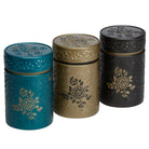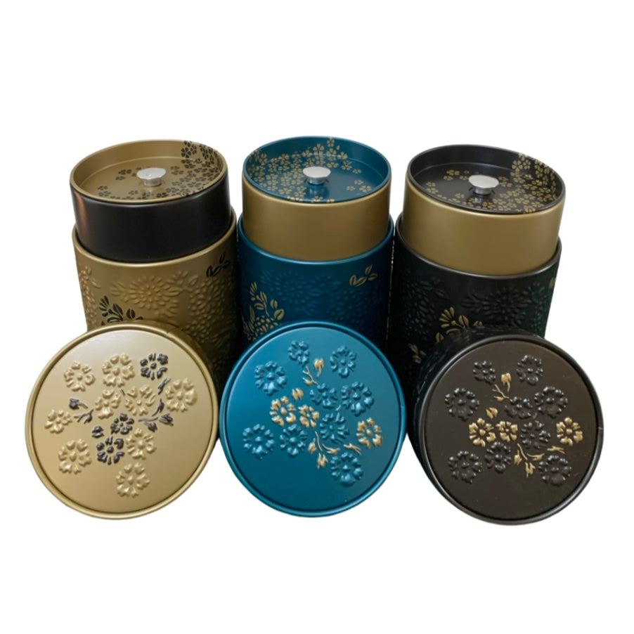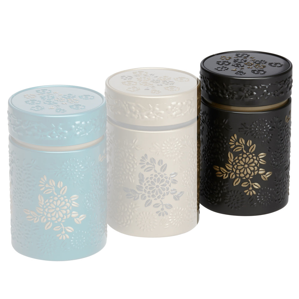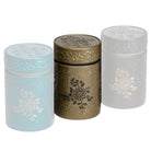 The design of this Tea Tin Yumiko featuring embossed flowers in petrol, gold and black. Available in three colours, with a plug lid and integrated inner lid for safe storage, each tin will hold 150g tea depending on the size of the tea leave.